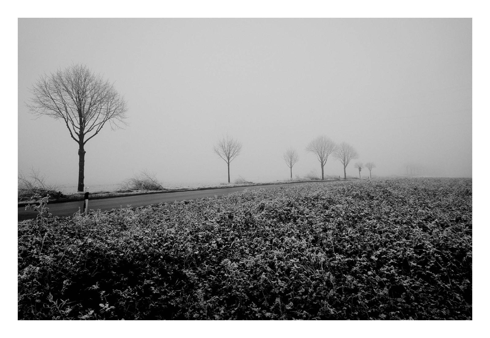 A cold but foggy day in winter offered the long-awaited and rare opportunity to capture some motifs in the surrounding area in the haze of the barely penetrating daylight. All images were taken in Krefeld, NRW, Germany, on or near the river Rhine.