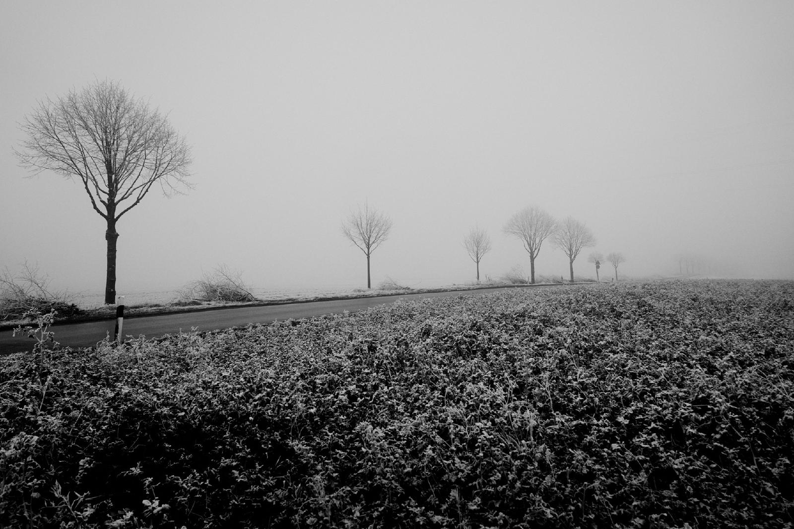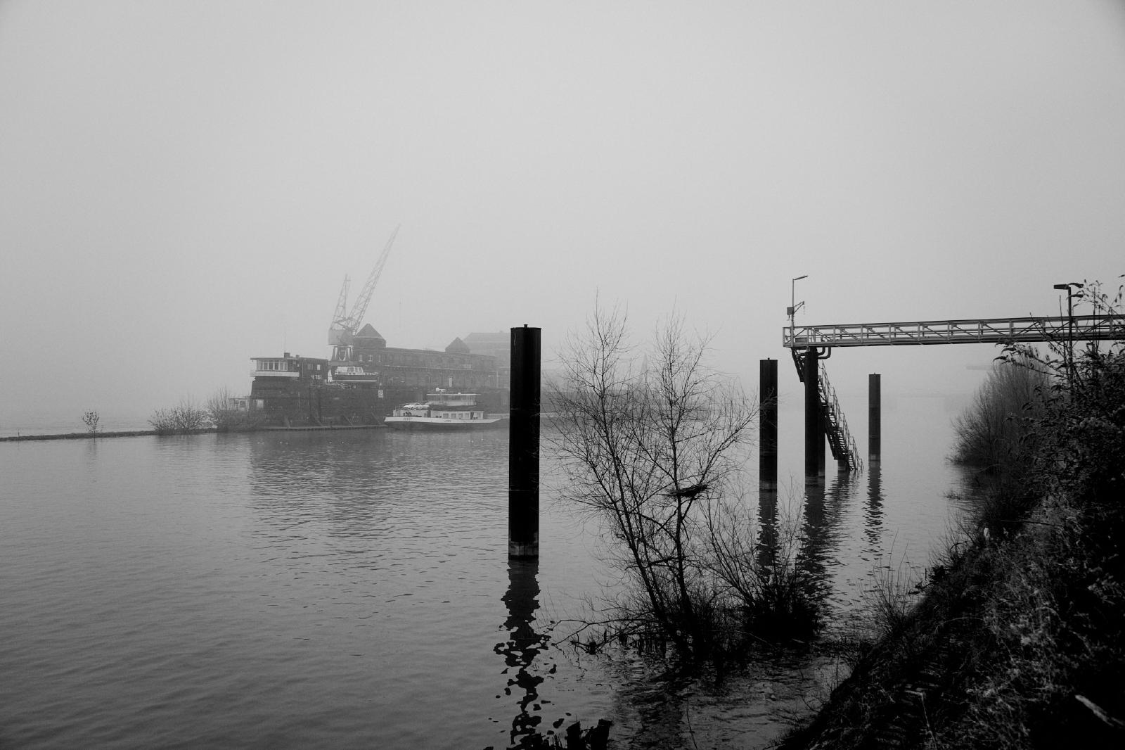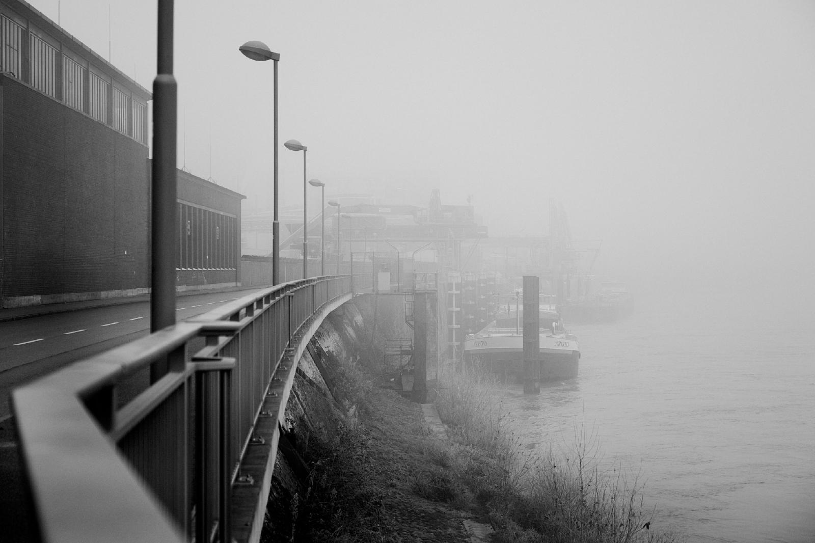 A cold but foggy day in winter offered the long-awaited and rare opportunity to capture some motifs in the surrounding area in the haze of the barely penetrating daylight. All images were taken in Krefeld, NRW, Germany, on or near the river Rhine.