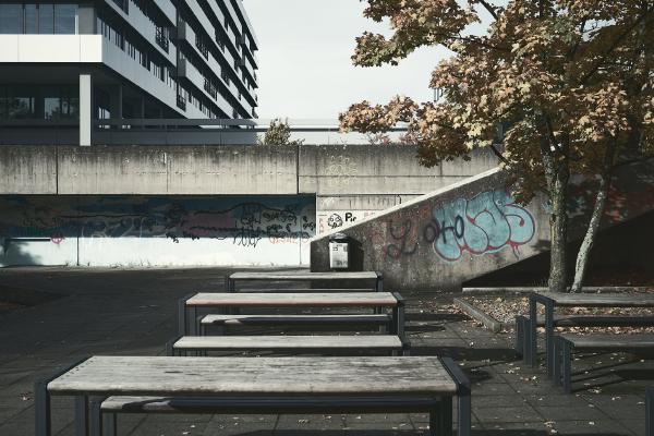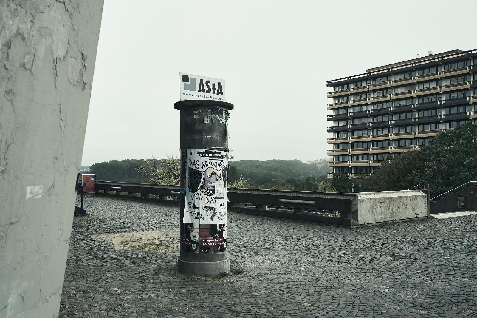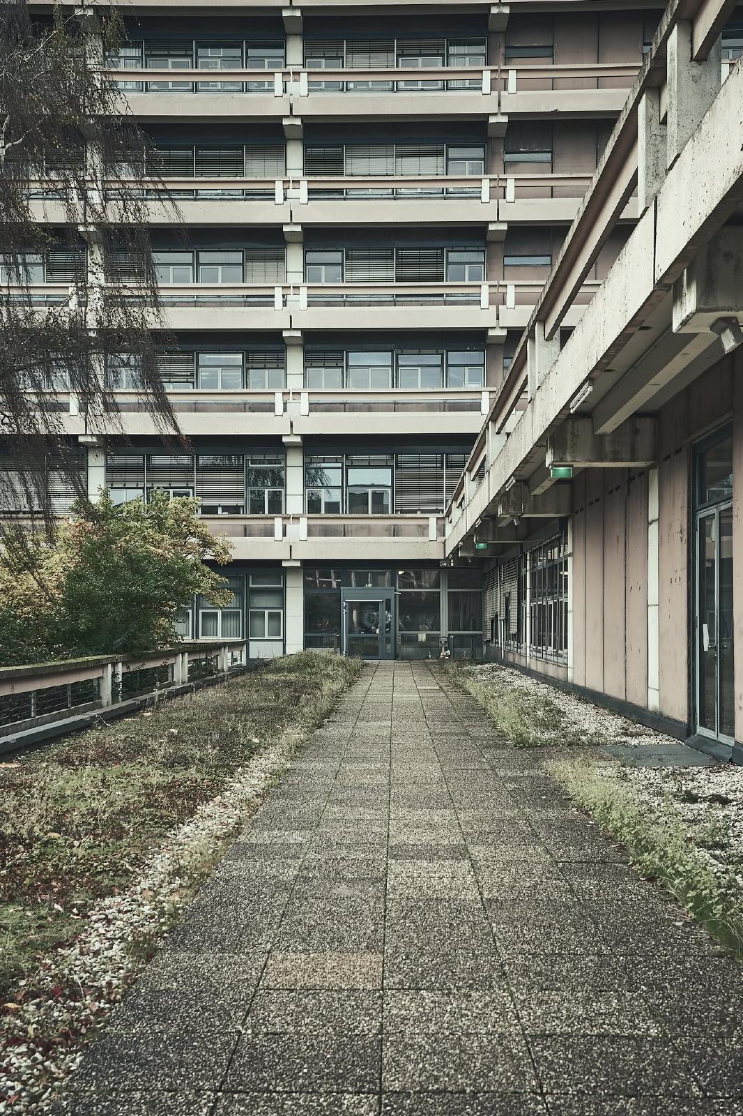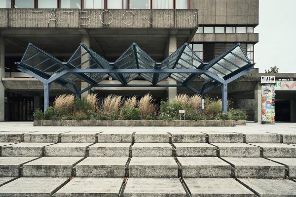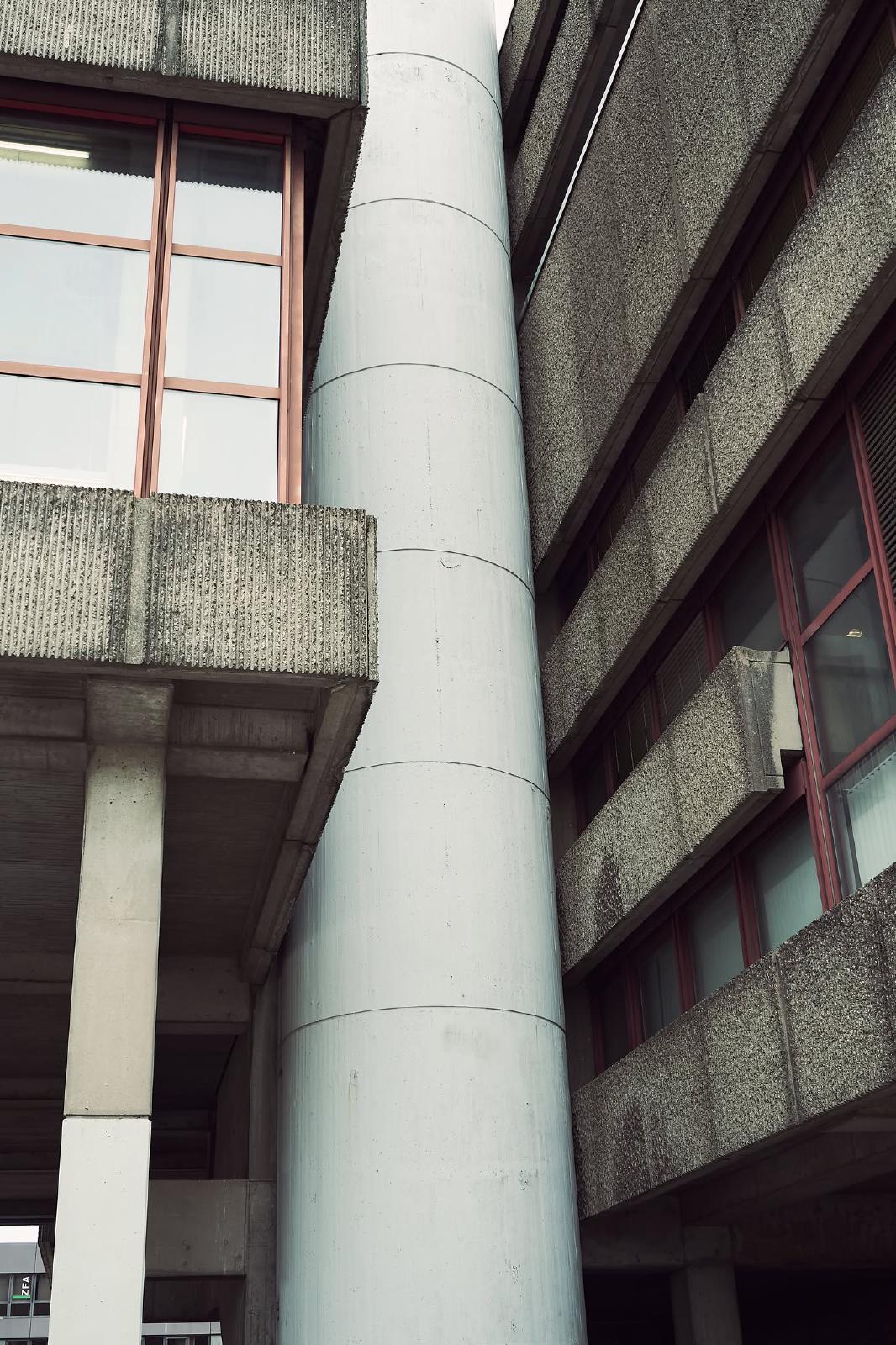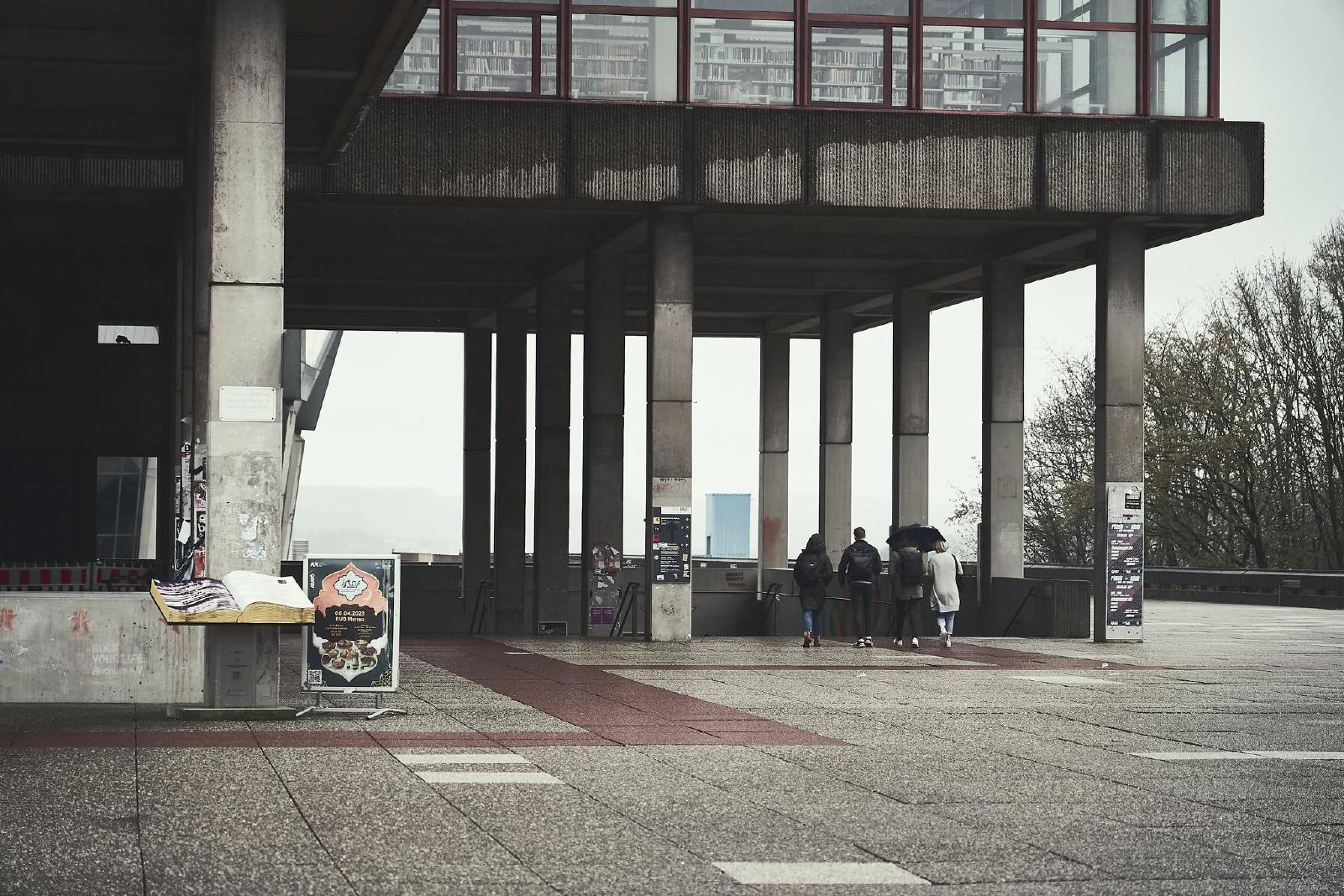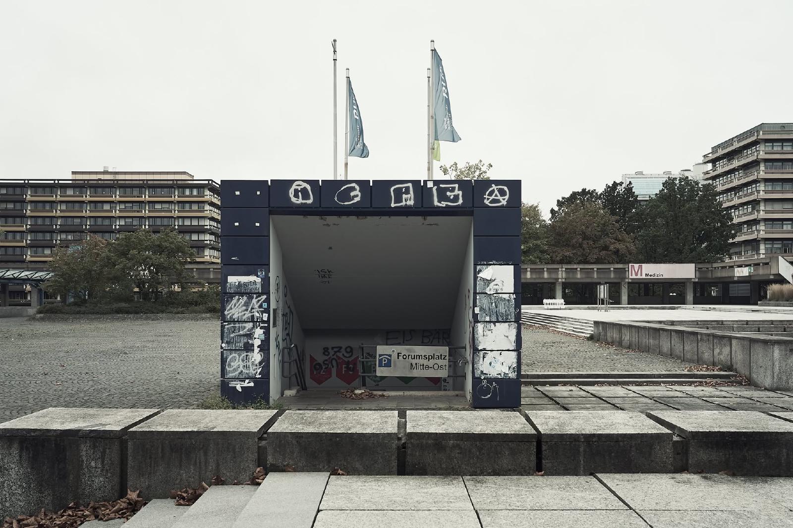 The Ruhr University Bochum was built between 1965 and 1974 and is an example of the Brutalist style in architecture. The term brutalism does not refer to the word brutal, but to “béton brut”, the French term for exposed concrete.